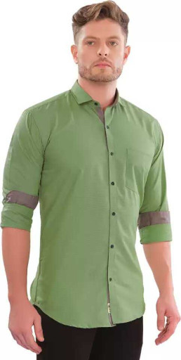 Men Slim Fit Solid Button Down Collar Casual Shirt