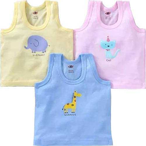 Printed Baby Vest for Kids Cotton Sleeveless Sando Baniyan Toddler Innerwear Baby Cloth for Baby Boys & Girls Pack of 3 (Multi_01, 0-6 Months)